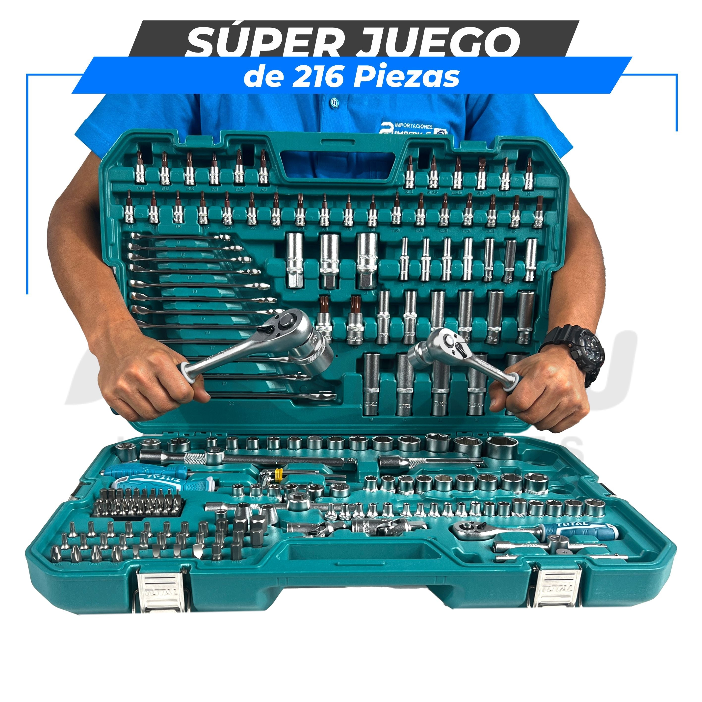 ¡Haz de tu taller el rey del rendimiento con nuestro Super Juego de 216 Piezas Mecánicas! 🧰🔧 Domina cualquier proyecto...