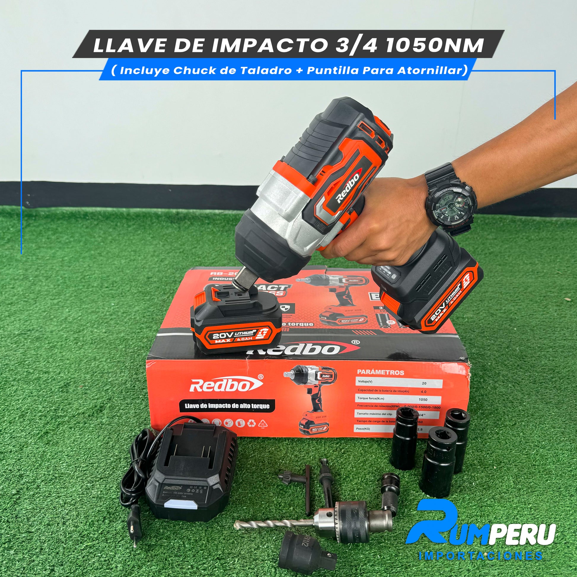 LLAVE D IMPACTO 3/4 1050NM (INCLUYE CHUCK DE TALADRO + PUNTILLA PARA ATORNILLAR)