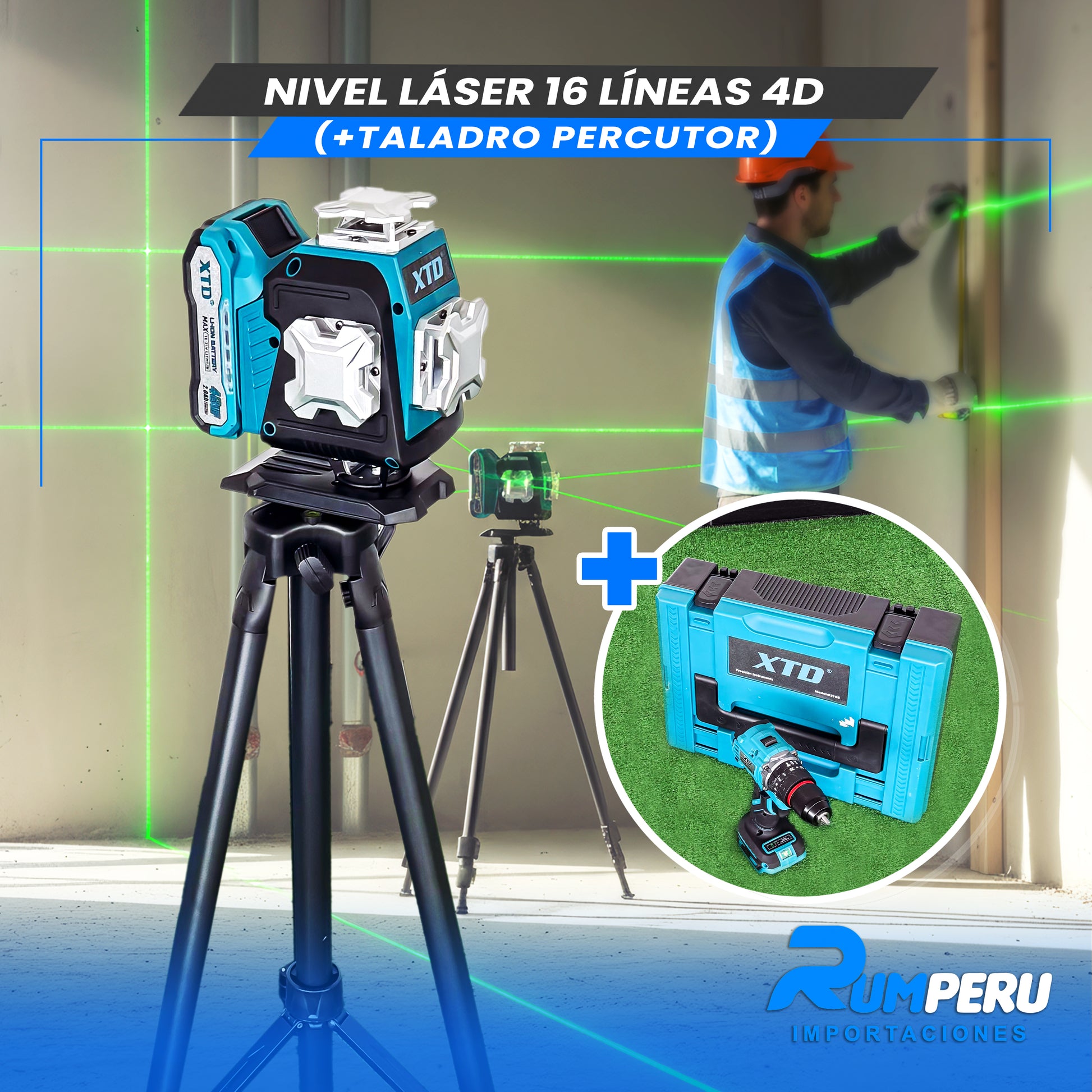 Te presentamos el Combo Nivel Láser 16 Líneas 4D + Taladro Percutor 60 Nm 🌐🔨