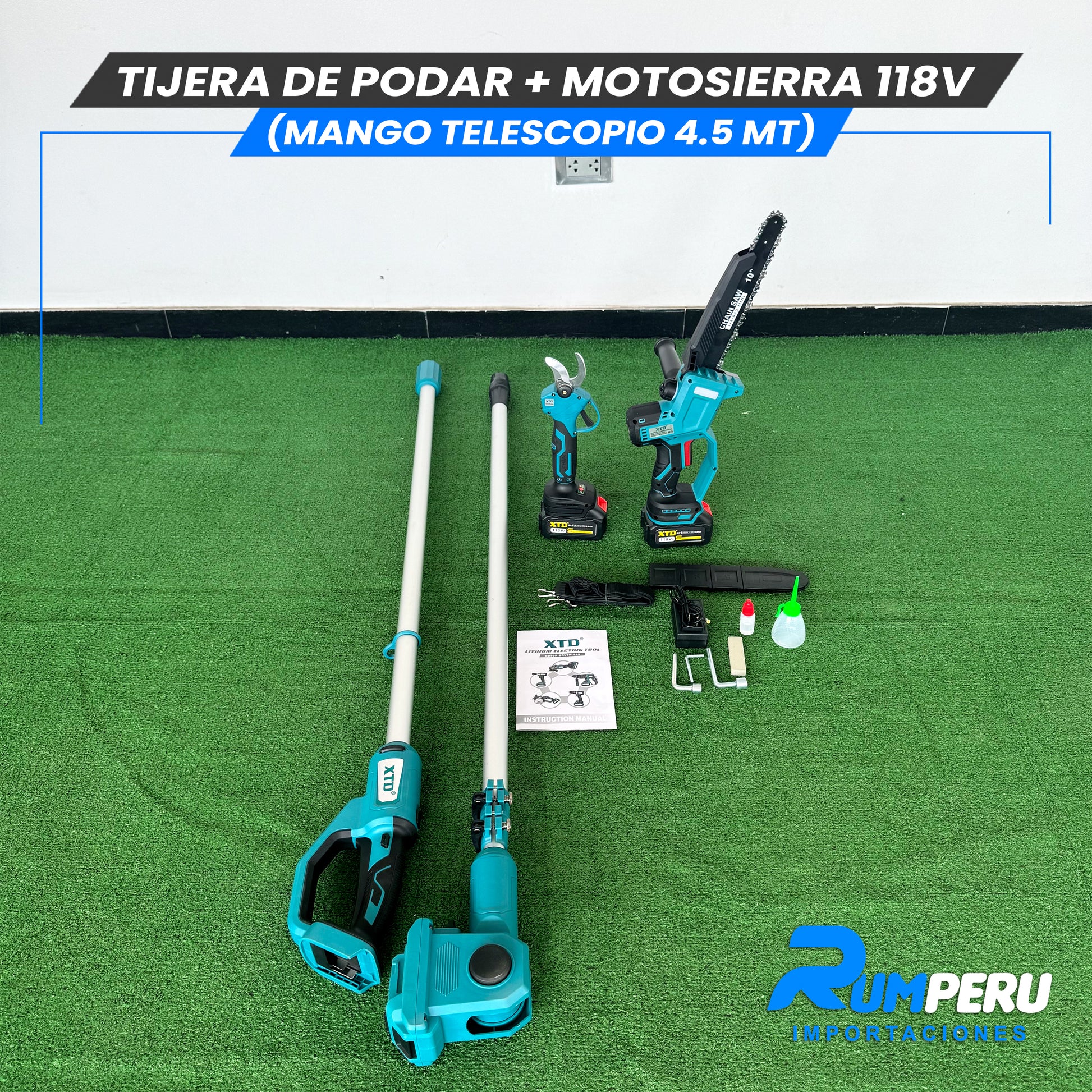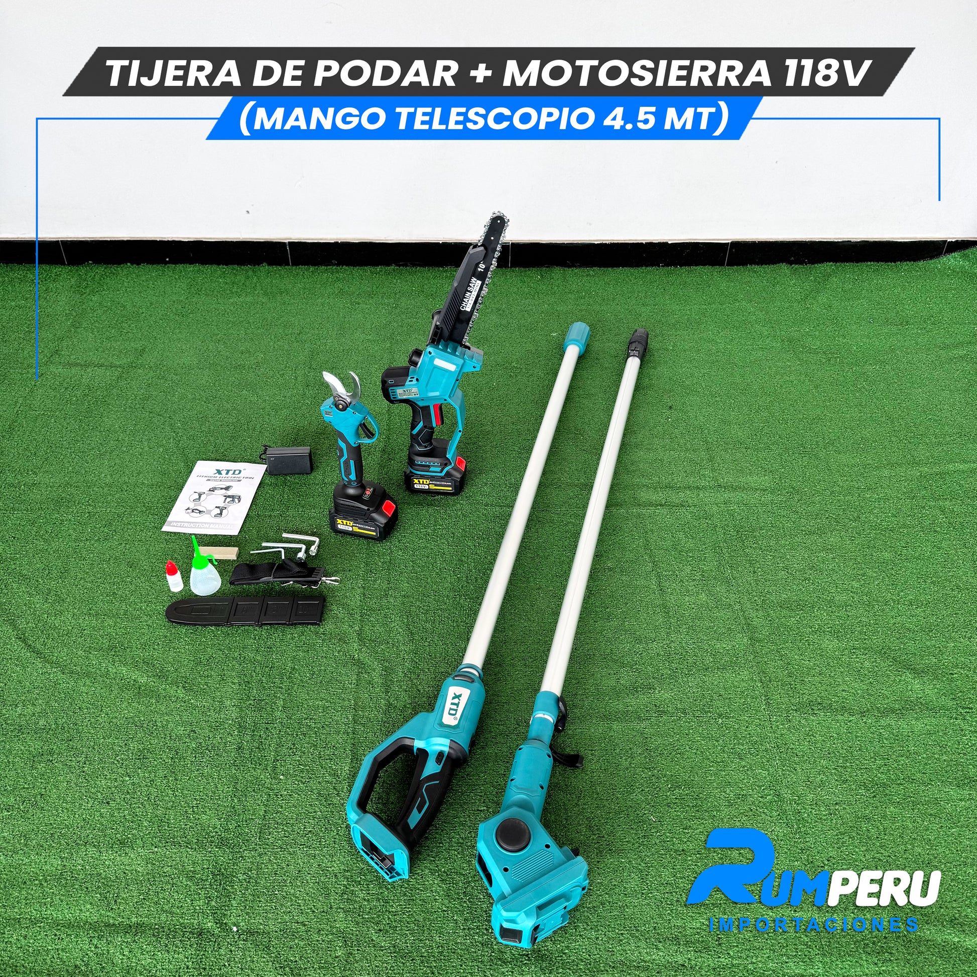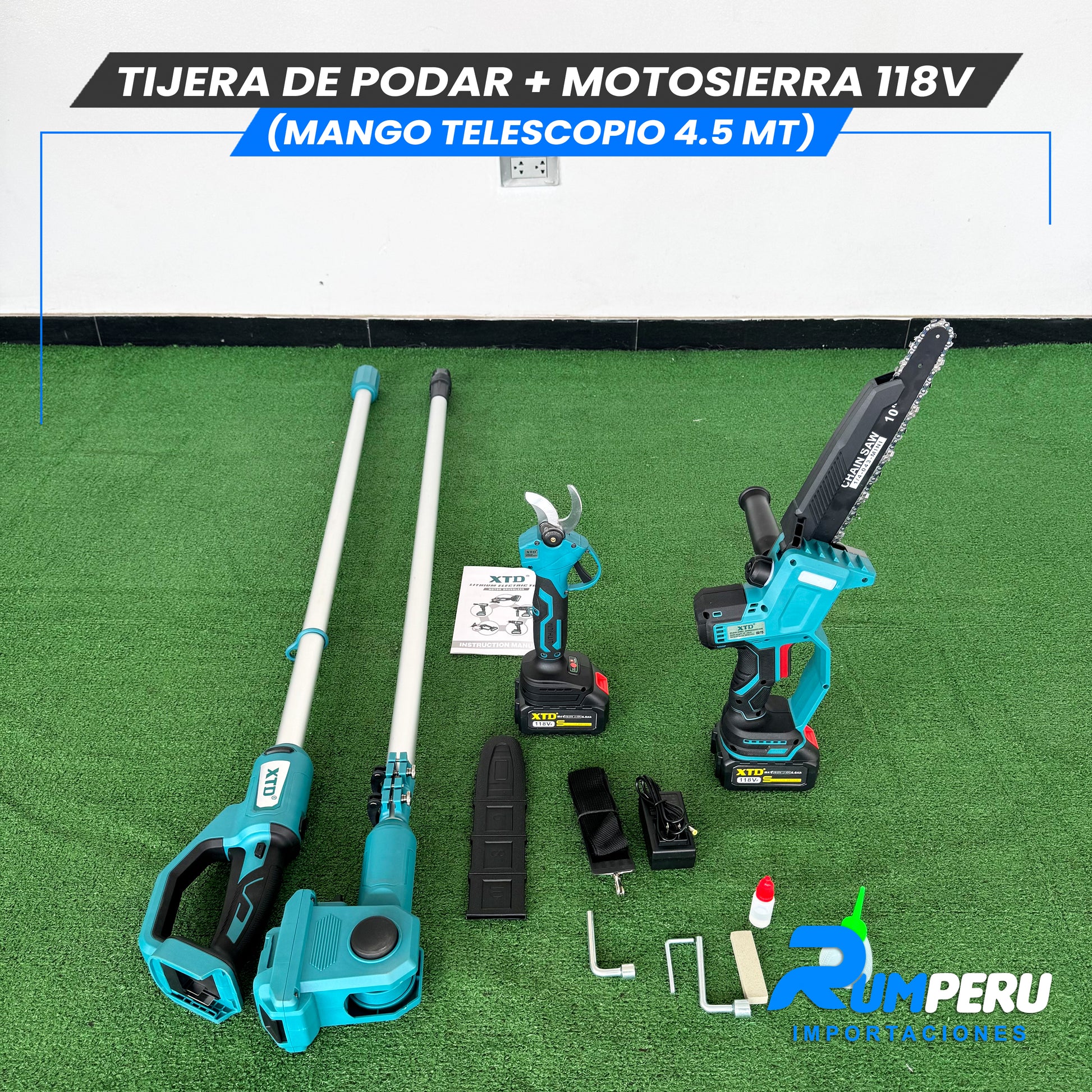 Tijera de podar + Motosierra 118V (Mango telescópico 4.5 MT)